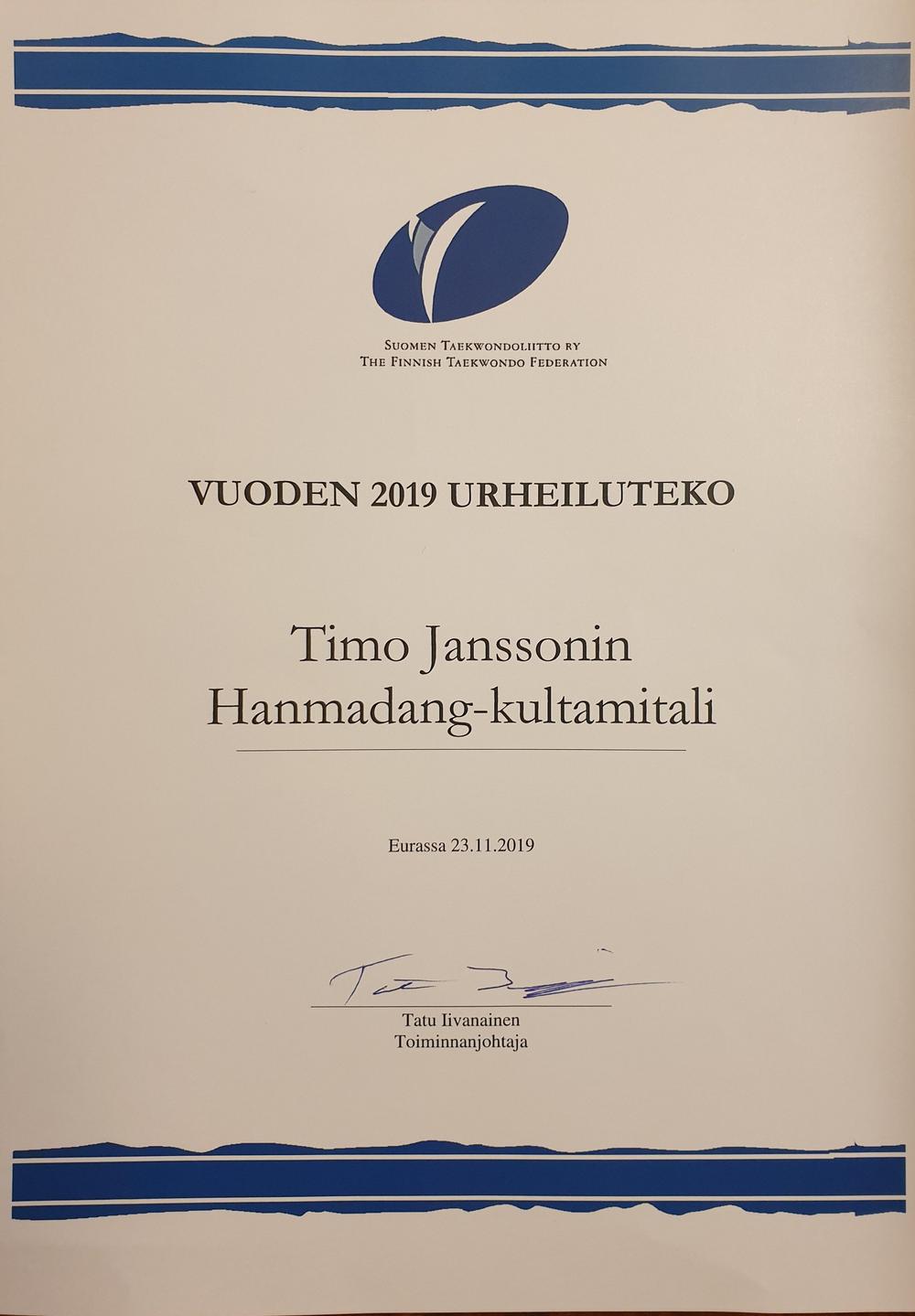 Timo Jansson 4Dan 14.12.2019 ja Master nimitys 15.05.2020