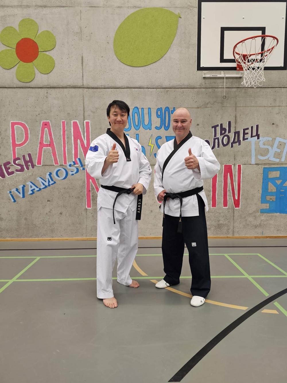 Sang Hyun Moon 7Dan, Koreasta, tuli Suomeen vetämään seurallemme mahtavat treenit 24.4.2025 torstaina. Opimme uusia juttuja mm Taekwondo Dancen ja Poomsae musiikin mukana rytmitystä.
